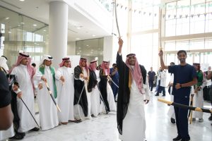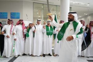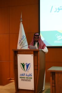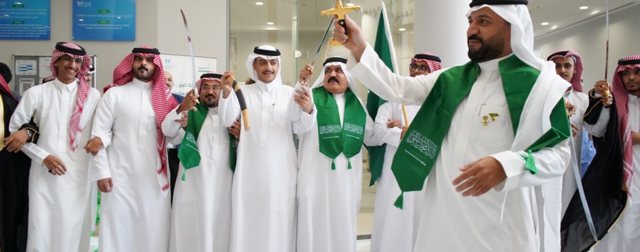 In a patriotic atmosphere filled with pride and honor for the glorious past of the nation, Al-Ghad Colleges for Applied Medical Sciences in Riyadh celebrated the 94th National Day of the Kingdom, in the presence of Mr. Ibrahim bin Musa Al-Zuwaid, Chairman of the Board of Trustees of Al-Ghad Colleges for Applied Medical Sciences. The event was attended by college staff, students, faculty members, and administrators. The ceremony included many national poems that embodied love of the nation, loyalty, and pride in it. The ceremony also included participating booths in honor of this occasion launched by the Chairman of the Board of Trustees of Al-Ghad Colleges for Applied Medical Sciences.