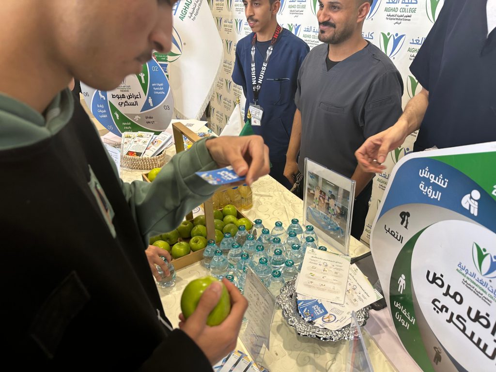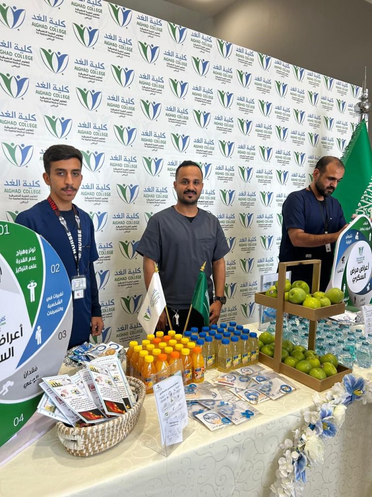 Under the slogan “Let’s Continue Raising Awareness About Diabetes,” Al-Ghad College in Riyadh held an awareness event about diabetes. The event was attended by students and included an educational lecture aimed at increasing awareness about diabetes, explaining the importance of screening, and discussing ways to live with the condition. Health consultations were also provided, along with the distribution of brochures and educational materials on healthy nutrition and the importance of physical activity. Through this collaborative effort, Al-Ghad College reflects its commitment to spreading awareness and promoting public health.
