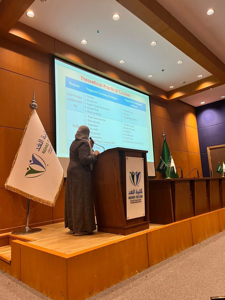As part of its ongoing efforts to enhance the efficiency of faculty members, the Faculty and Staff Development Committee organized a workshop titled “Course Report,” presented by Dr. Eman Salah. The workshop aimed to strengthen participants’ academic and administrative skills by discussing the frameworks and principles required to prepare comprehensive and accurate course reports. It covered several critical topics, including academic standards and best practices for evaluating educational performance. The workshop was attended by several faculty members, and the committee ensured a dynamic and interactive environment that promoted the sharing of experiences and ideas. This plays a key role in enhancing the quality of education at the college. The workshop aligns with the committee’s strategy to improve academic performance and strengthen collaboration among faculty members, ultimately supporting the achievement of the college’s educational objectives.