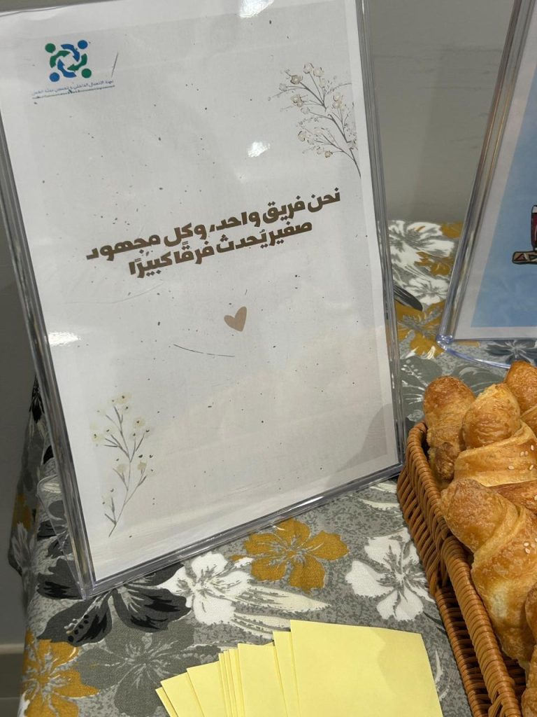 As part of its continuous commitment to employees and improving the work environment, the Internal Communication and Workplace Improvement Committee at Al-Ghad College in Riyadh organized a special corner titled “Boost Your Mood and Enjoy Your Drink.” The event featured a Kahoot game to break the work routine and included the distribution of motivational messages aimed at encouragement. Employees showed great enthusiasm and participation, with many highlighting the importance of such activities in fostering teamwork and mutual support.