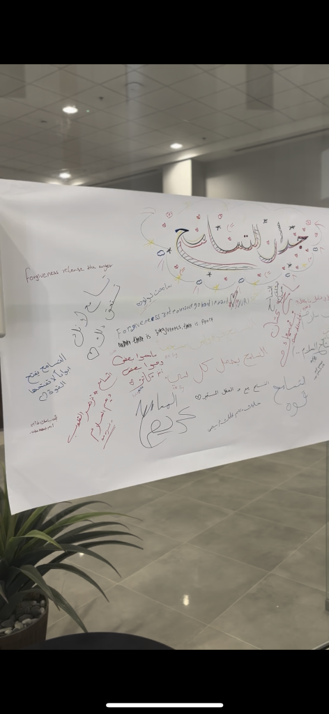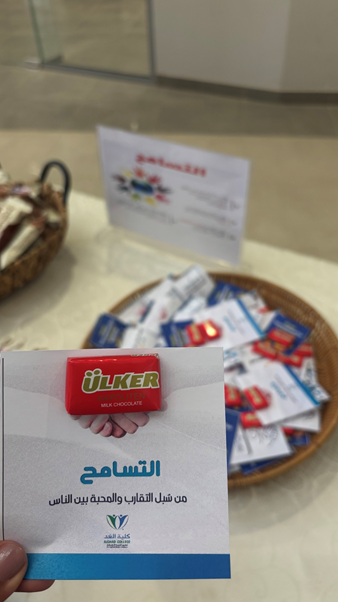 An awareness corner was set up that included educational materials, brochures, and motivational posters encouraging respect for others and the rejection of intolerance, in addition to short visual clips about tolerance that were displayed on the college screens. The Intellectual Awareness Committee also contributed by creating a “Tolerance Wall” where students wrote messages and expressions about tolerance, which added a positive and engaging atmosphere to the event.